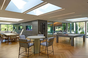 The clients sought to transform this space into a modern, year-round retreat for their large, active family. Their vision prioritized stronger visual and spatial connections between the wing and the main residence—already renovated—as well as the integration of multiple uses: indoor swimming, lounging, exercise, gaming, and housing a collection of saltwater fish.